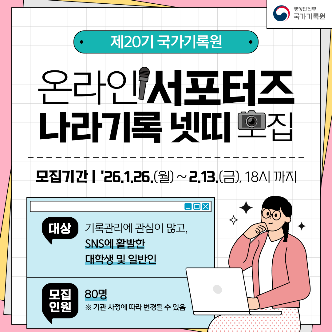 [제20기 국가기록원 온라인 서포터즈 ‘나라기록 넷띠’ 모집 안내]